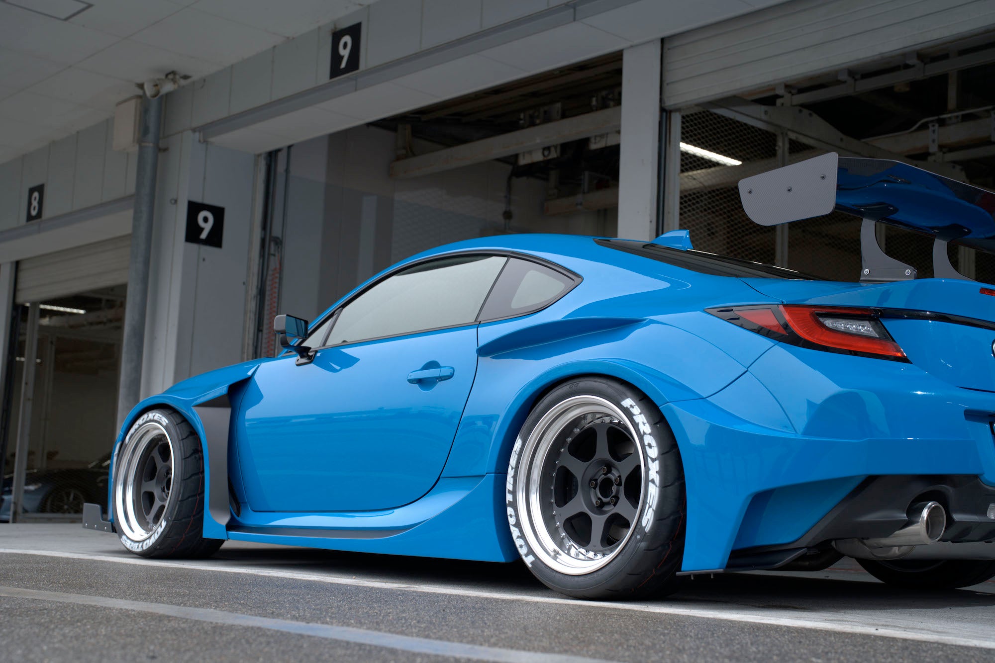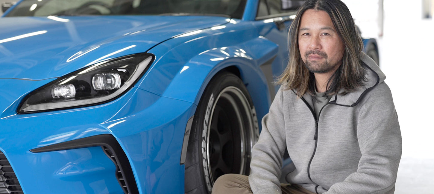 今、日本発信のワイドボディエアロはビス止めオーバーフェンダーのような昭和感のあるイメージが多いのですが、令和のスタイルとしてスマートで、機能的にかっこよく、個性的で、大人も乗れる上品なワイドボディのデザインを模索した結果、「GT カー」のイメージに高級感とスポーツ性をプラスした造形に辿り着きました。