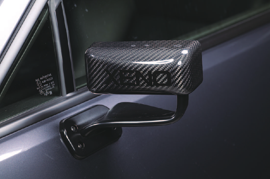 ドライカーボン製のミラーにブルーコーティングミラーをセットしたGTミラー。空力と軽追求し、ミラーベースはGTカー同様のマグネシウムさを製です。