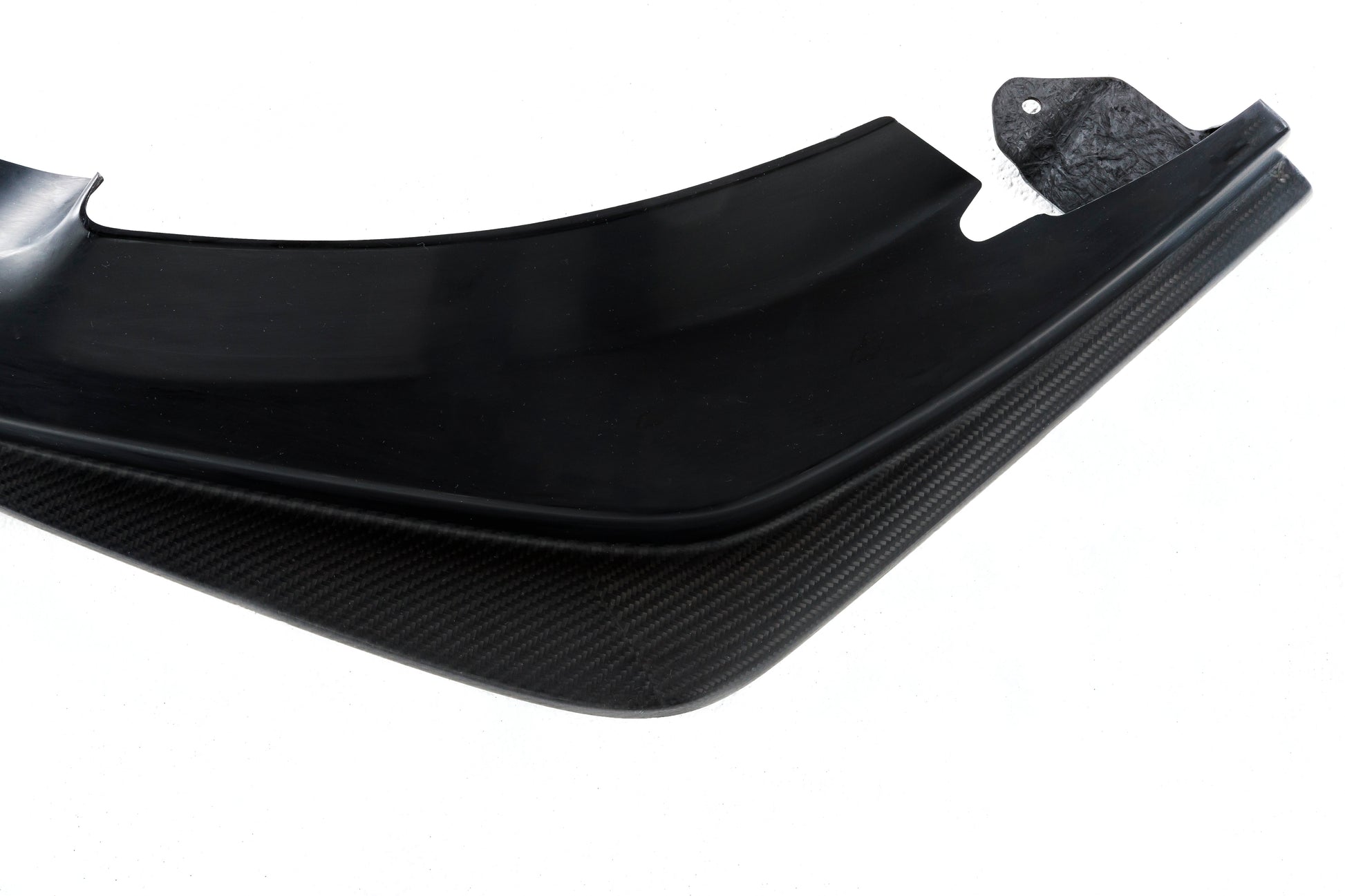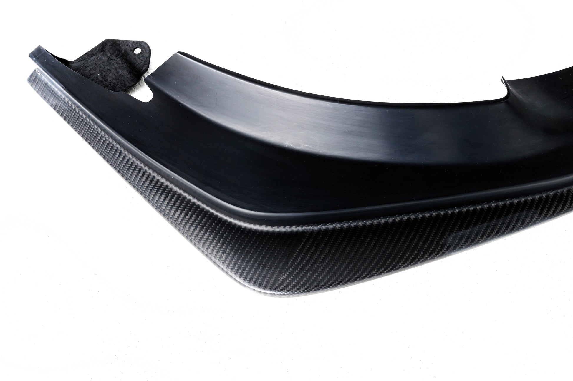 「S-Specカーボン」シリーズは、FRPとカーボンのハイブリッド素材「カーボンハイブリッド」を使用しています。 見える部分は、カーボン。 見えない部分はFRPという組み合わせで、見た目と価格のバランスを高次元で互換車検に対応しうるギリギリの張り出し量で、初見の迫力と高級感にこだわったデザインに。