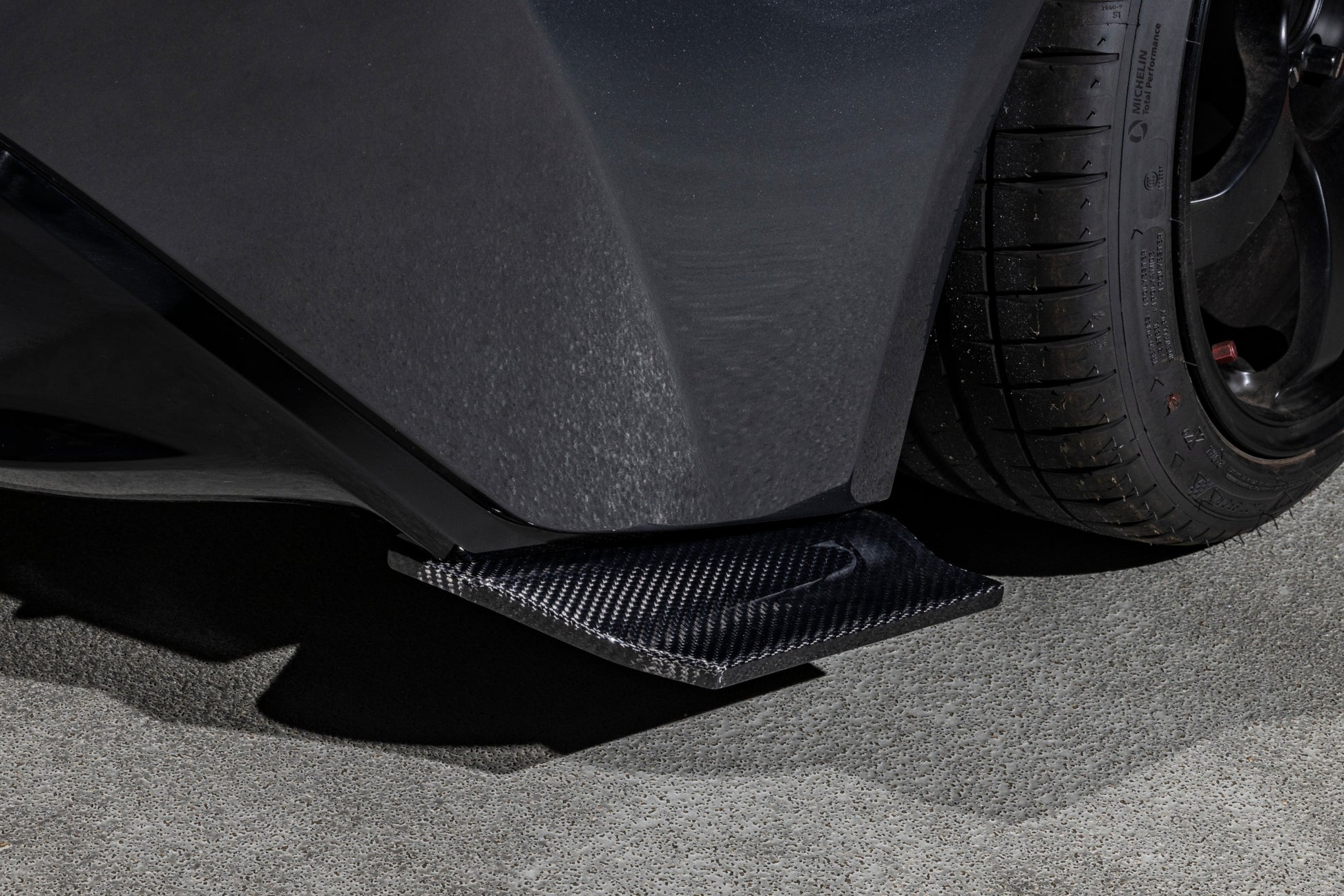 「ハイブリッド カーボン」製のエンドプレート。 純正バンパーの視界にプラスするだけで、バンパー下部のフューザーのラインを延長したように見せられます。純正バンパーとは思えない迫力の見た目に演出できます。
